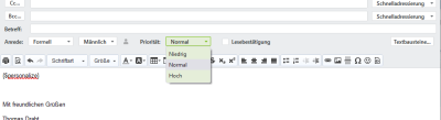 Wahlweise können Sie vor dem Senden eine Gewichtung Ihrer Nachricht über die Dropdown-Schaltfläche Priorität angeben. Hier erfahren Sie mehr über die verschiedenen E-Mail-Farben.