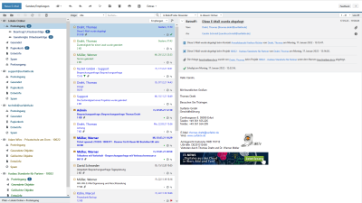 Was ist mit einer E-Mail bereits geschehen? Eine Vielzahl von zusätzlichen Informationen und zuletzt ausgeführten Aktionen werden in jeder E-Mail und in der Vorschau angezeigt. Diese Information erhalten sogar Personen eingeblendet, welche die gleiche E-Mail ebenfalls erhalten haben. So sehen Sie auch direkt, wenn ein Kollege bereits Arbeiten an einer E-Mail ausgeführt hat. Dies ist unabhängig von IMAP- oder POP3-Konten und den damit einhergehenden persönlichen Postfächern.
