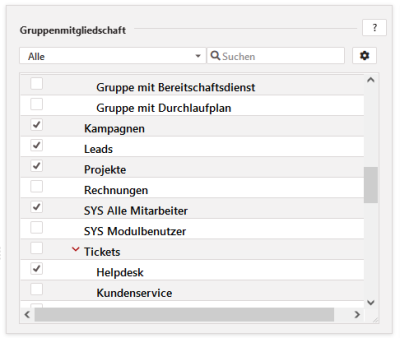 Ist die Ansicht bzw. Auswahl je Abteilung notwendig, so muss der entsprechende Nutzer in die jeweilige Gruppe aufgenommen werden.