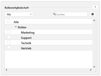 Über der Auswahlbox finden Sie eine Filtermöglichkeit. So können Sie nach „Alle“, „Ausgewählte“ und „Nicht ausgewählte“ Filtern. Des Weiteren haben Sie daneben ein Suchfeld, um nach entsprechenden Daten in der Auswahlbox zu suchen. Beginnen Sie einfach mit dem Schreiben und die gefundenen Übereinstimmungen bleiben bestehen. Über das Zahnrad für die Einstellungen können Sie weitere Optionen für die Ansicht der Baumstruktur festlegen.