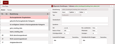 - Buchungskalender Eingabedaten (booking_form_values_text) – ist ein Textbereich, der für die Anzeige der im Buchungsformular übermittelten Daten verwendet wird. Auch für dieses Feld sollten Sie den Schreibschutz nicht verändern.