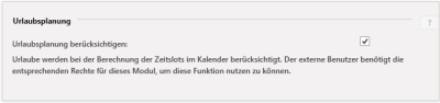 Ist das Modul aktiviert, werden beim Erstellen von verfügbaren Buchungszeiträumen nicht nur die Termine der Kalenderbesitzer, sondern auch deren Urlaub und sonstige Abwesenheiten berücksichtigt.