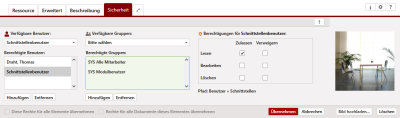 Als Administrator legen Sie die Berechtigung über die > > jeweiligen Benutzer auswählen > Termine ein. Fügen Sie den erforderlichen Schnittstellenbenutzer oder die erforderliche Gruppe hinzu und setzen Sie die Rechte Lesen, Bearbeiten und Löschen