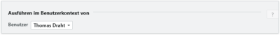 In diesem Abschnitt können Sie im Feld Benutzer einen Benutzer angeben, mit dem das Add-on ausgeführt werden soll, so als wäre dieser der eingeloggte Benutzer. Das bedeutet, dass ein Benutzerwechsel durchgeführt wird und dieser nach der Ausführung des Add-ons wieder auf den eingeloggten Benutzer zurück wechselt. Wird kein Benutzer angegeben, wird weiterhin der eingeloggte Benutzer verwendet.