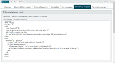 | E-Mail-Betreff - interne Benachrichtigung Terminstornierung | Ist der Betreff, welcher in der E-Mail stehen soll. |