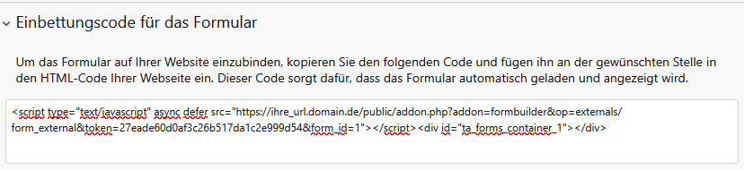 Formulareinbindung in Ihre Website