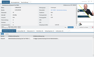 Im unteren Bereich des Artikels finden Sie viele Registerkarten mit weiteren Informationen zum Artikel. Auch diese Ansicht mit der Anzahl und Reihenfolge der Registerkarten kann sich von Ihrer persönlichen Ansicht unterscheiden.
