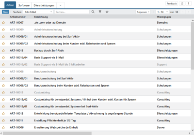 Die Artikelverwaltung des TecArt CRM grenzt sich klar von einem ERP-System mit der Verwaltung und klassischer Warenwirtschaft ab. Über die Artikelverwaltung besteht keine Möglichkeit, Warenbestände zu pflegen. Jedoch bietet sich die Möglichkeit, über die umfangreichen Schnittstellen und Erweiterungsmöglichkeiten auch externe Daten, wie Bestände aus anderen Systemen zu integrieren. Weitere Details können Sie bei Bedarf unserem Marktplatz entnehmen.