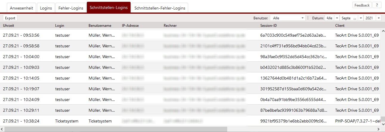 Loggt sich ein Mitarbeiter über einen andere Zugang oder automatisch über den TecArt Starter ein, so kann es vorkommen, dass die Logins über die Schnittstellen-Logins aufgezeichnet werden.