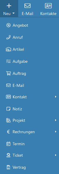 Für diesen Fall finden Sie in der Modulleiste am oberen linken Bildschirmrand einen Button mit der Aufschrift Neu
