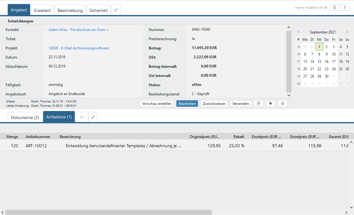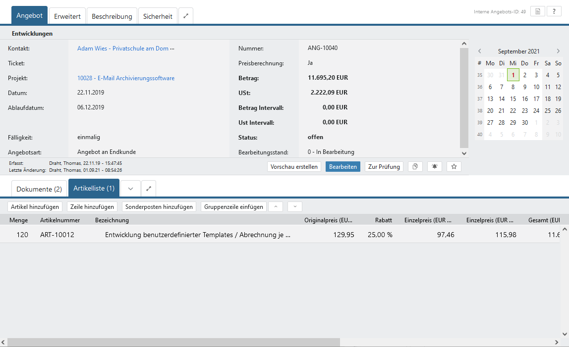 Angebote verfassen und bearbeiten mit Artikelverwaltung #