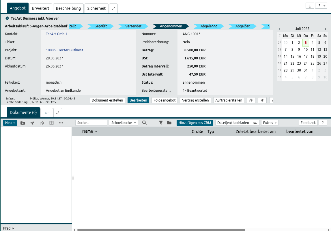 Im unteren Bereich des Angebotes finden Sie viele Registerkarten mit weiteren Informationen zum Angebot. Auch diese Ansicht mit der Anzahl und Reihenfolge der Registerkarten kann sich von Ihrer persönlichen Ansicht unterscheiden.