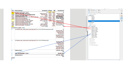 | Dokument wird nicht erstellt. Es werden keine Artikel, Steuern, Gebühren, Summen ausgegeben. | Bitte prüfen Sie, ob die Textmarken in dem Dokument richtig gesetzt wurden. Es muss immer ein entsprechender START– und END-Tag vorhanden sein. Wird die Schleife zu früh abgebrochen oder zu spät beendet, kann dies zu Fehlern bei der Erstellung des Dokuments führen. | |||||