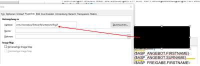 Im Feld „Adresse" wird dann der TecArt CRM interne Pfad zum Ziel-Bild angegeben. Hierbei können Sie auch mit Variablen arbeiten, wie bspw. Benutzer-Informationen, interne ID´s oder andere Feldangaben.