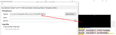 | Eigene Dokumente | crm://owndocs/Entwürfe/unterschrift.png | crm://owndocs/Entwürfe/unterschrift.png – Gibt einen Ordnerpfad in den eigenen Dokumenten an und verwendet das Bild mit dem Namen „unterschrift.png".