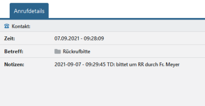 Um den Inhalt einer Anrufnotiz anzuzeigen, können Sie den Anruf mit einem Doppelklick öffnen oder durch einen einfachen Klick auf den entsprechenden Eintrag im oberen Bereich des Moduls anzeigen lassen.