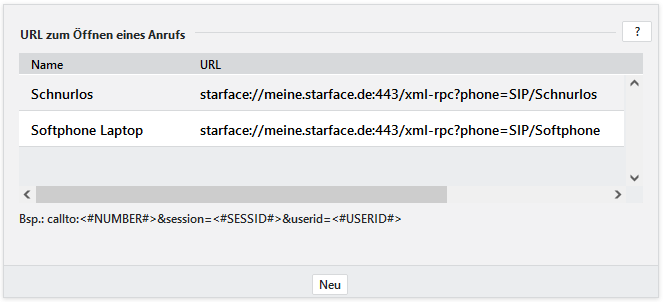 | URL | In diesem Feld wird die URL für die Telefonanlage eingetragen. Je nach Typ können verschiedene Parameter übergeben werden, um entsprechende Daten zwischen der Telefonanlage und dem TecArt CRM auszutauschen. |