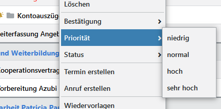 - Die der Aufgabe kann über das Kontextmenü auf verschiedene Werte gesetzt werden.