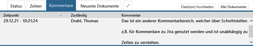 Zeige Kommentare im Aufgabenfenster Das ist ein anderer Kommentarbereich, welcher über Schnittstellen angesprochen werden kann. Dieser kann z.B. für Kommentare zu Jira genutzt werden und ist unabhängig zu den Kommentaren im Bereich der erfassten Zeiten zu verstehen.