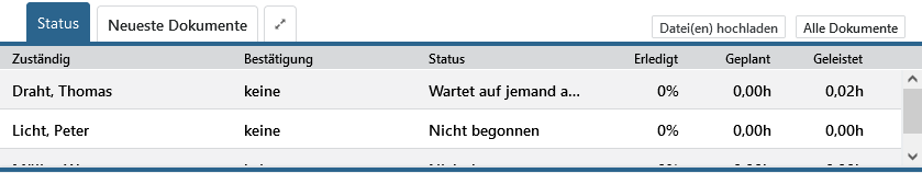 Zeige Statusübersicht im Aufgabenfenster Diese Einstellung blendet unterhalb der Notizen und Zuständigen den aktuellen Status der Bearbeitung einer Aufgabe ein. Dort sehen Sie ggf. auch den Status anderer Mitarbeiter.
