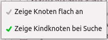 Zeige Kindknoten bei Suche zeigt auch Datensätze unterhalb des Knotens an, wenn die Übereinstimmung nur auf den Knoten, nicht jedoch auf den Datensatz zutrifft