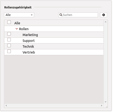 Über der Auswahlbox finden Sie eine Filtermöglichkeit. So können Sie nach „Alle“, „Ausgewählte“ und „Nicht ausgewählte“ Filtern. Des Weiteren haben Sie daneben ein Suchfeld, um nach entsprechenden Daten in der Auswahlbox zu suchen. Beginnen Sie einfach mit dem Schreiben und die gefundenen Übereinstimmungen bleiben bestehen. Über das Zahnrad für die Einstellungen können Sie weitere Optionen für die Ansicht der Baumstruktur festlegen.