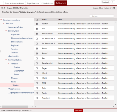 Administratoren sehen weiterhin alle Gruppen in den Sicherheitsregistern, Benutzer nur noch ausschließlich die markierten Rechtegruppen, welche ggf. weiteren Einschränkungen im Rahmen des hierarchischen Aufbaus unterliegen können. |