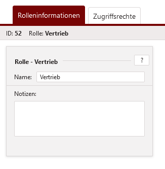 In diesem Register haben Sie die Möglichkeit den Rollennamen zu verändern sowie das Feld Notizen zu befüllen.