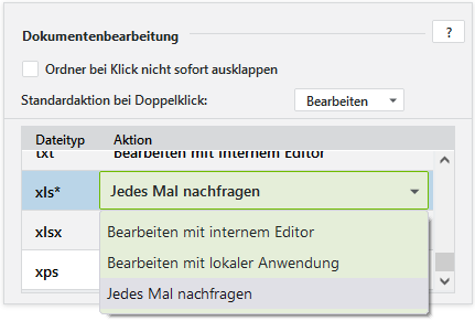 Im Bereich der Dokumentenbearbeitung können Sie weiterhin festlegen, welcher Dateityp mit welcher Applikation geöffnet werden soll. Dabei gibt es zwei Varianten:
