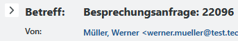| Betreff | Die Betreffzeile ist eine der wichtigsten Angaben und sollte aussagekräftig sein. Wenn es um ein neues Thema geht, vermeiden Sie, auf diese E-Mail zu antworten. Schreiben Sie eine neue E-Mail oder verändern Sie den Betreff auf das neue Thema, um sich und dem Empfänger eine Chance für den Inhalt zu geben.
