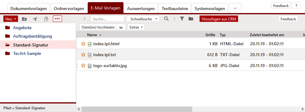 | Typ | E-Mail-Vorlage | Inklude-Dateien |