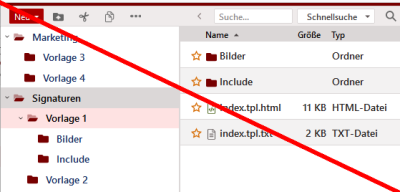 Im zweite Schritt wird auf Basis der Standard-Vorlage die eigentliche Vorlage (z. B. Signatur 1) definiert. Hierfür legen einen neuen Ordner Signatur 1 an.