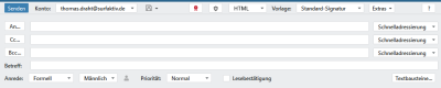 Sie können nun die E-Mail ganz normal schreiben und . Vor dem Versand wird ein gültiger öffentlicher Schlüssel an Ihre Empfänger geprüft. Sollte an einen oder mehrere Empfänger kein Schlüssel vorhanden sein, erhalten Sie eine entsprechende Fehlermeldung.
