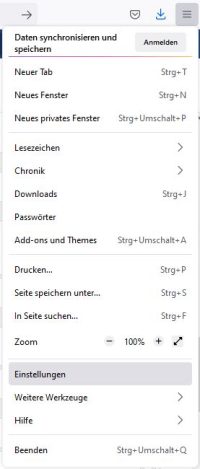 Gehen Sie im Firefox Firefox auf und wählen Einstellungen