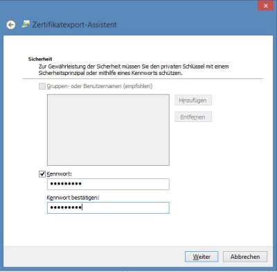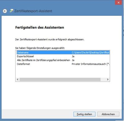 Nun können Sie Ihr Zertifikat auswählen und entsprechend sichern.