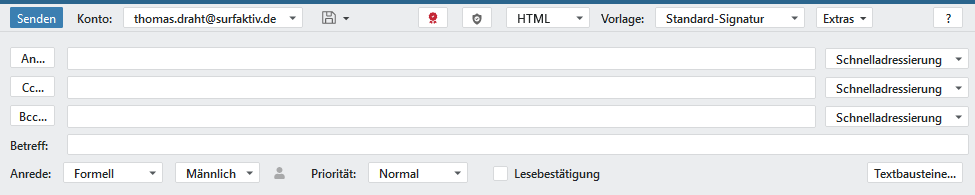 Schreiben Sie nun eine E-Mail an den Empfänger und versenden Sie diese. Insofern Sie noch keine signierte E-Mail Ihres Empfängers erhalten haben, fordern Sie diesen ebenfalls auf, Ihnen eine signierte E-Mail zukommen zu lassen.