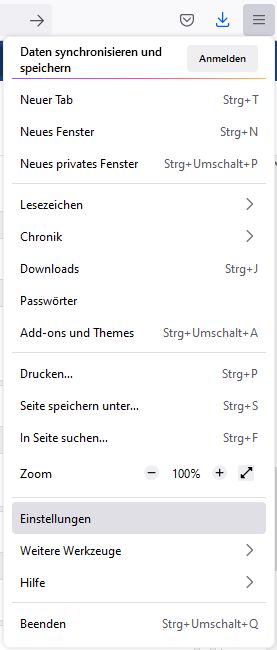 Gehen Sie im Firefox Firefox auf und wählen Einstellungen
