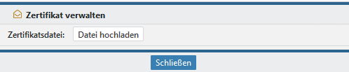 Den Import eines neuen Zertifikates starten Sie aus der Verwaltung der Zertifikate über den Button . Wählen Sie dazu das entsprechende Zertifikat von Ihrem lokalen Laufwerk und laden Sie dieses hoch.