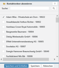 Für öffentliche Kontaktordner nutzen Sie dann den Button . Dieser öffnet das entsprechende Fenster für die Auswahl der Kontakte. Für die Auswahl der Projekte klicken Sie auf .
