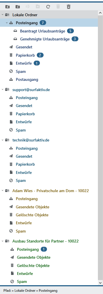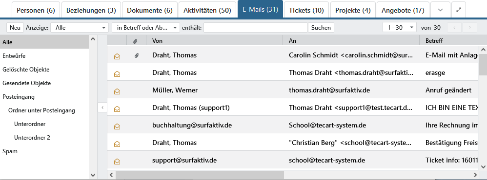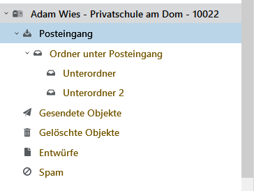 Sie können für jedes abonnierte Projekt oder jeden Kontakt eine beliebige Ordnerstruktur aufbauen. Die Ordnerstruktur wird in die Registerkarte E-Mail des jeweiligen Kontaktes oder Projektes übernommen.