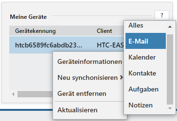 | Letzte Synchronisation | Diese Spalte beinhaltet Informationen, wann der entsprechende Client zuletzt eine Synchronisation durchgeführt hat. |