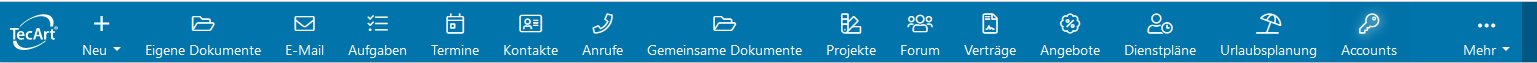 Mit welchen Modulen arbeiten Sie am häufigsten? Ihre angezeigten Module in der obersten Menüleiste können Sie über das Register Hauptmenü selbst einstellen. Dies empfiehlt sich immer dann, wenn Sie eine Vielzahl von Modulen nutzen und die Modulleiste nicht mehr für Ihre Bildschirmansicht reicht oder Sie einige Module eher seltener nutzen.