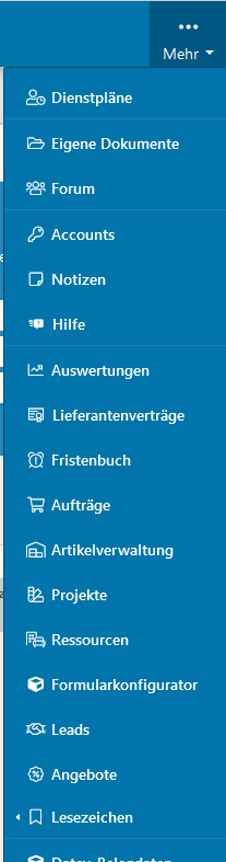 Generell werden alle Module, welche nicht mehr in das Hauptmenü passen automatisch in das Mehr-Menü verschoben.