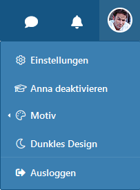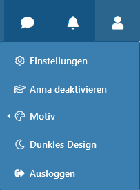 Im Hauptmenü befinden sich rechts verschiedene Einstellungsmöglichkeiten. Je nachdem, ob für Ihr Profil ein Benutzerbild hinterlegt ist, wird Ihr Bild oder ein Icon angezeigt. Ebenso verhält es sich mit der Anzahl der darunter befindlichen Menüeinträge.