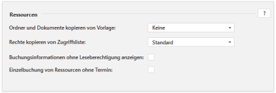| Ordner und Dokumente kopieren von Vorlagen | Haben Sie für dieses Modul Ordnervorlagen erstellt, können Sie an dieser Stelle eine Standardvorlage auswählen. Diese wird dann herangezogen, wenn ein Benutzer die Auswahl zwischen mehreren oder keinen vorgegebenen Strukturen hat. Wählen Sie an dieser Stelle Keine, werden die Standardrechte für jede Ressource aus den Rechteeinstellungen der Dokumente übernommen. |