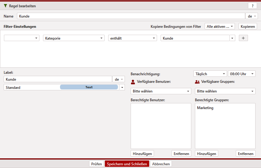 Label und Benachrichtigung sind zwei unabhängige Funktionen. Beide Funktionen vereint die Grundlage eines Filters.