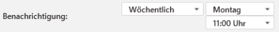 Unter der Benutzer- und Gruppenauswahl befindet sich ein Drop-Down-Feld, welches wahlweise um verschiedene Einstellungen erweitert wird. Die Auswahl reicht dabei von Sofort über zeitlich wiederholende Abläufe bis hin zu 1x täglich oder 1x wöchentlich. |
