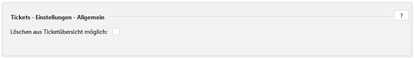 Über die Funktion Löschen aus Ticketübersicht möglich schalten Sie für die berechtigten Mitarbeiter über alle Bereiche hinweg die Möglichkeit ein, über das Kontextmenü der Ticket-Übersicht Tickets direkt zu löschen. Wird diese Funktion nicht aktiviert, können Tickets nur über den Bearbeitungsmodus eines jeden einzelnen Tickets gelöscht werden.