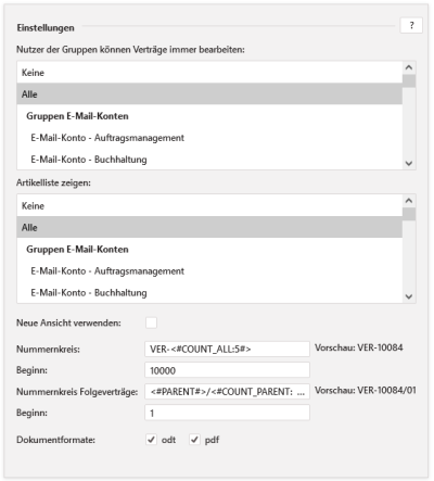 In diesem Bereich werden Grundeinstellungen für die Vertragsverwaltung vorgenommen. Mit diesen Einstellungen sind Sie in der Lage Ihr System individuell anzupassen.