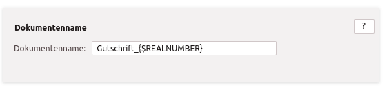 An dieser Stelle legen Sie den Dokumentennamen fest, welchen Gutschriften erhalten soll. Dabei können Sie auch mit Variablen arbeiten, um den Dokumentennamen zum Beispiel mit der Vorgangsnummer zu erweitern. Im TecArt CRM selbst können Sie beliebige Dokumentennamen verwenden. Diese können auch Unterstriche oder Trennstriche enthalten. Bitte prüfen Sie ggf. mit den verwendeten Buchhaltungsprogrammen ab, ob diese alle Zeichen akzeptieren, wenn Sie später die Dokumente weiterverarbeiten möchten.